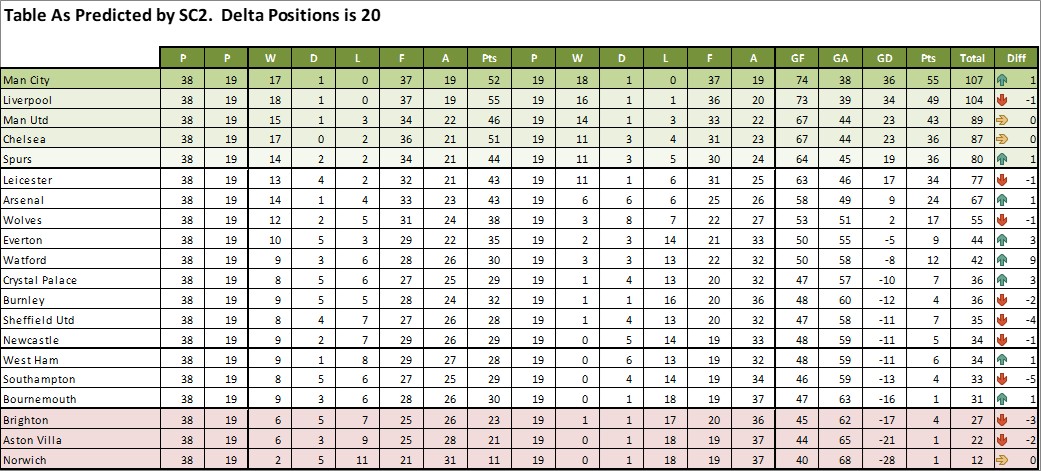 Your Table This is how the table looks based solely on your predictions and as if every game had been perfectly guessed.